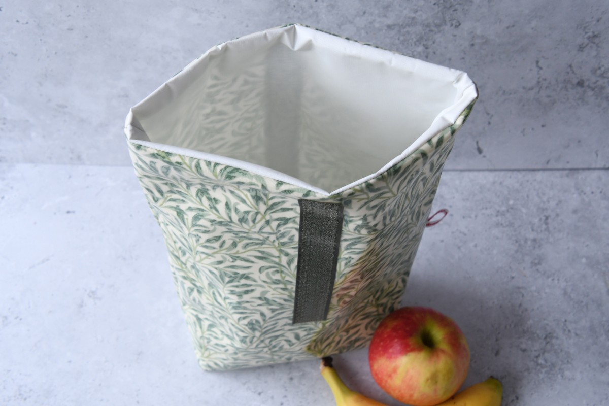 Der Innenstoff lässt sich einfach herausstülpen und unter fließendem Wasser reinigen. Der Lunchbag kann auch bei 30°C in der Waschmaschine gewaschen werden.