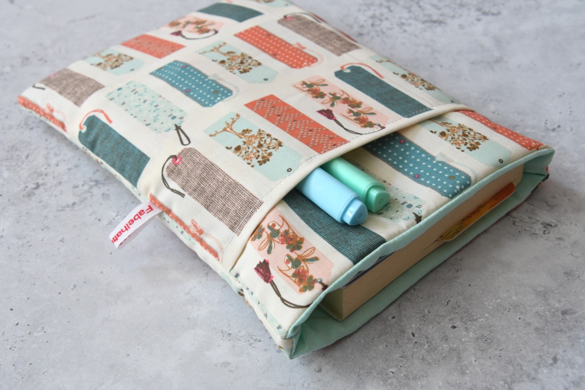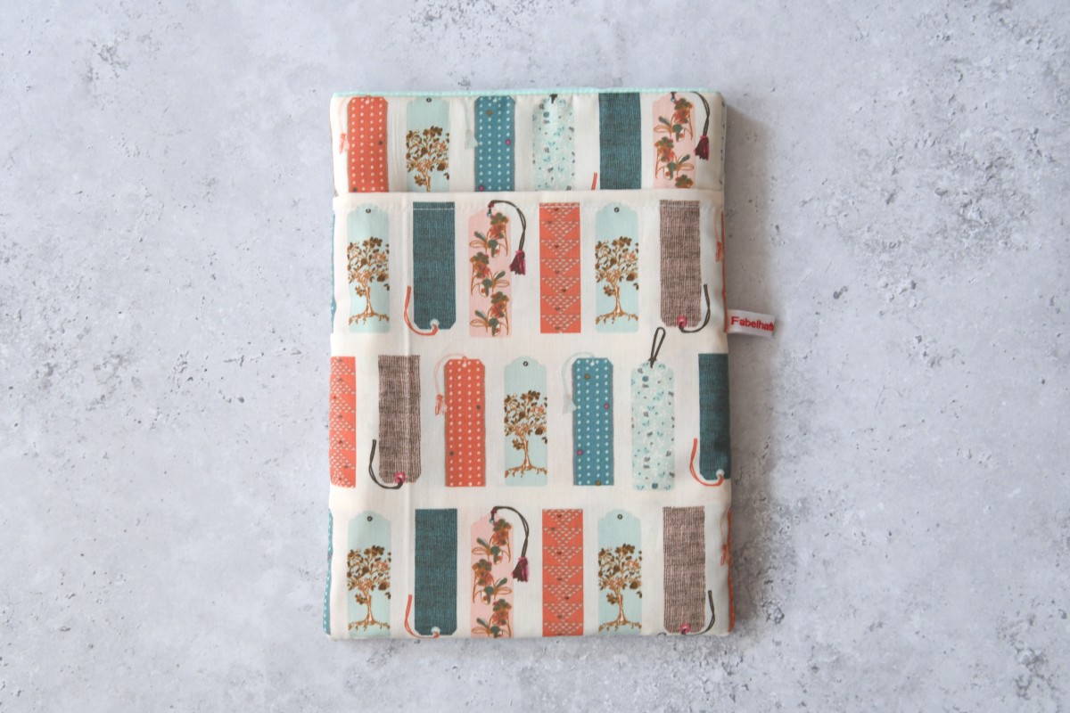 Mobile Preview: Buchtasche, Buchhülle - "Lesezeichen auf creme"