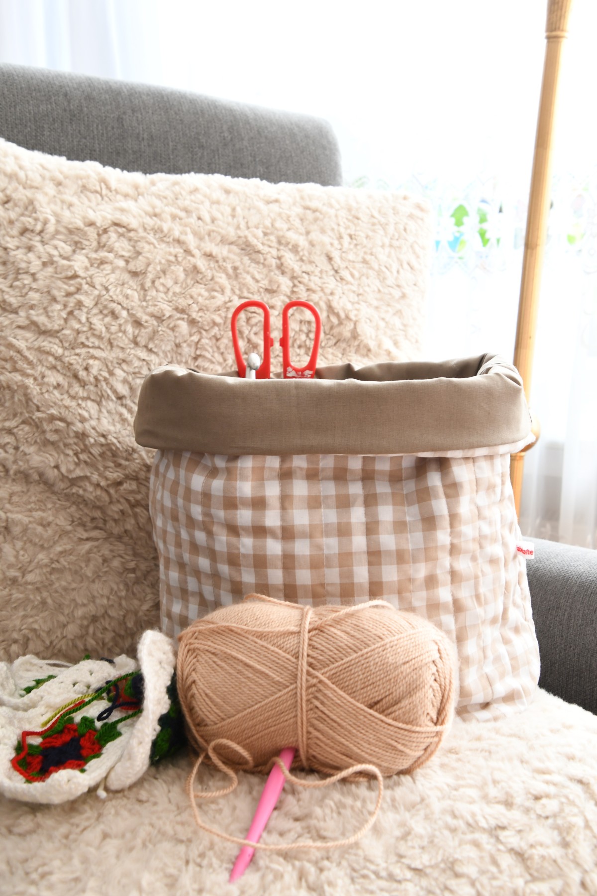 Der Strickbeutel ist ideal für das Wohnzimmer, alles lässt sich schnell und ordentlich verstauen. Auch unterwegs ist er der perfekte Begleiter, um Strick- oder Häkelprojekte mitzunehmen. Eine bequeme und zugleich stilvolle Tasche, die auf keiner Reise oder im Urlaub fehlen darf. Denn alles Wichtige findet darin Platz.