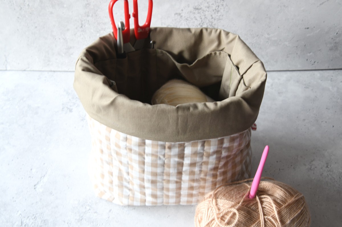 Diese praktische und komfortable Projekttasche ist der perfekte Begleiter zur Aufbewahrung von Garn, Strick- und Häkelzubehör.