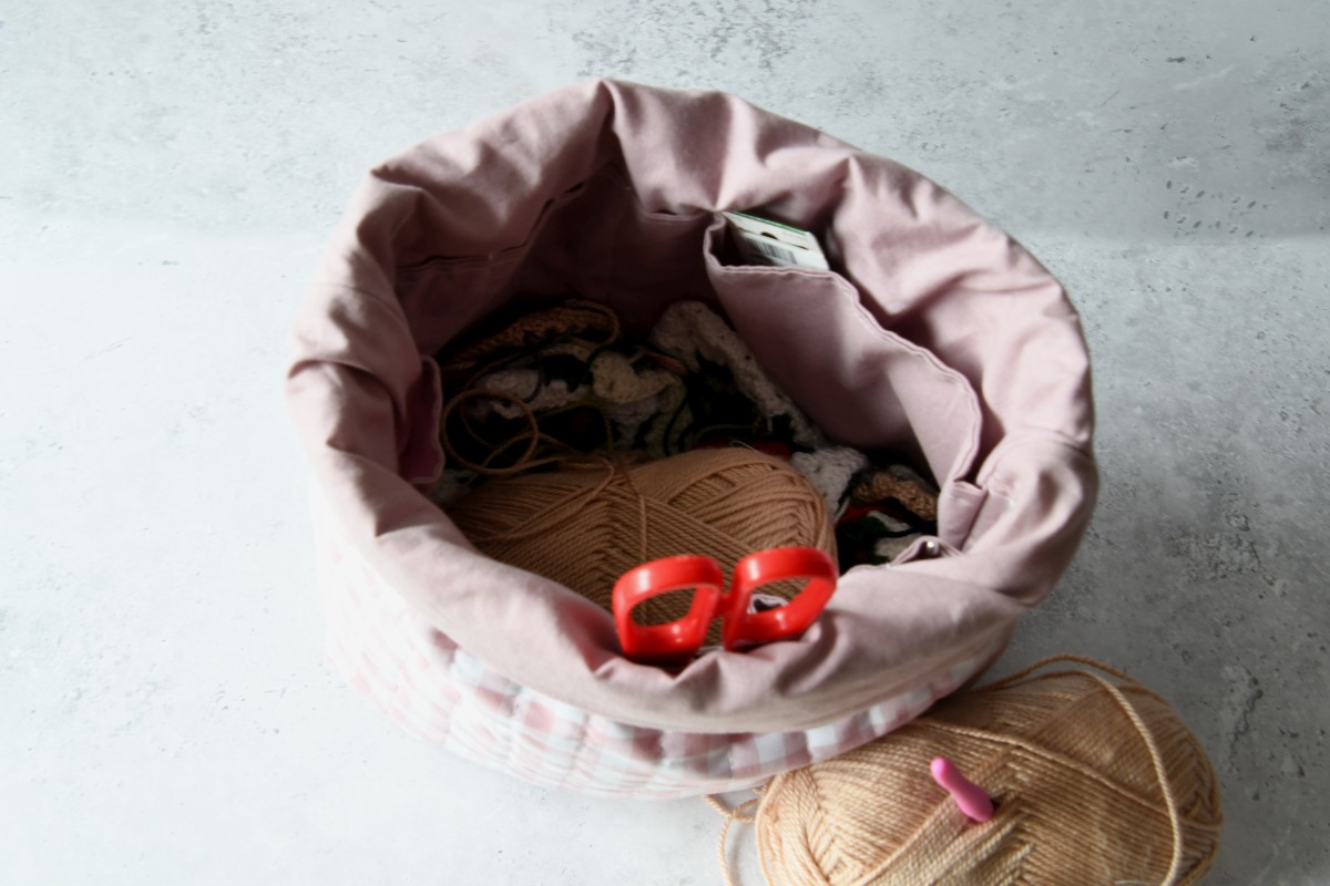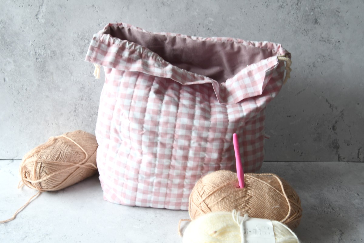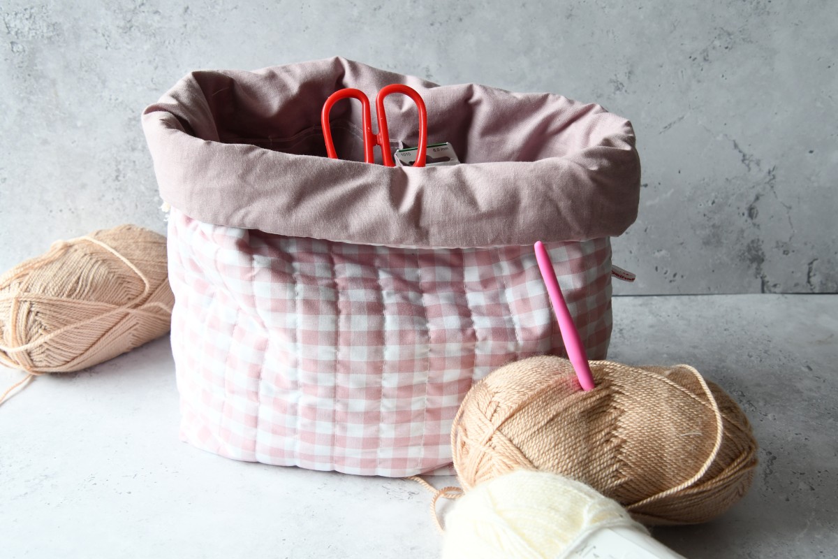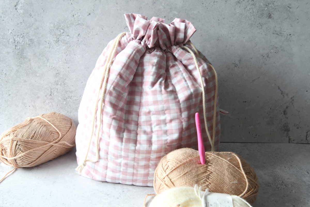 Diese praktische und komfortable Projekttasche ist der perfekte Begleiter zur Aufbewahrung von Garn, Strick- und Häkelzubehör.